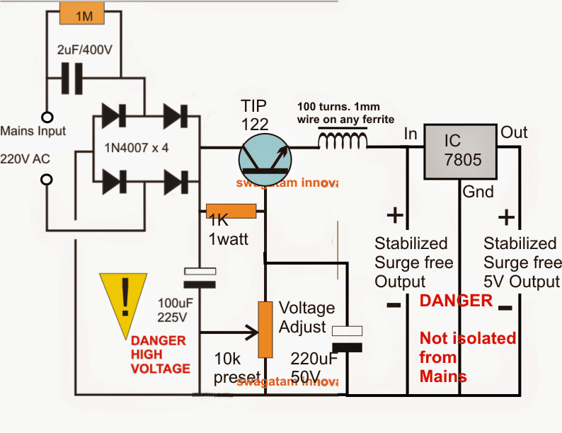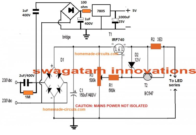 在使用桥式网络和10u/400V电容器进行适当的整流和过滤后,电路的输入可直接从交流电源获得。