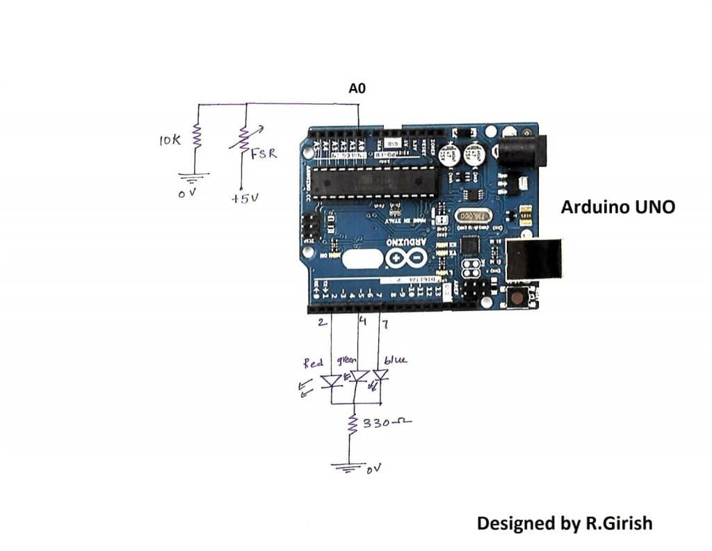 这是另一个使用arduino来测量不同压力水平的电路:
