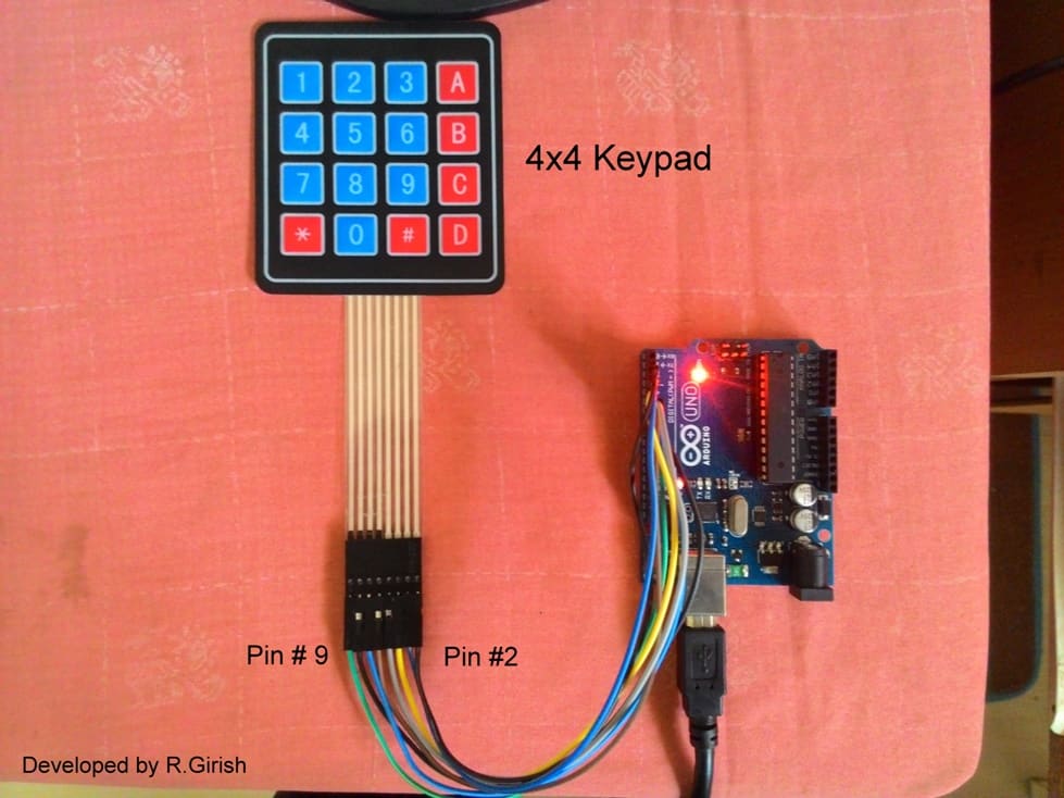 注意:连接键盘到arduino的引脚时要小心,任何不正确的连接或任何电线互换,都可能会扰乱您的整个项目。