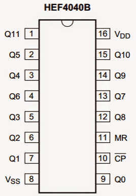 上图描述了IC 4040的引脚配置,它们的评估如下:
