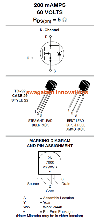 这篇文章解释了一个小信号,低功率n通道mosfet 2N7000G的主要规格和引脚。
