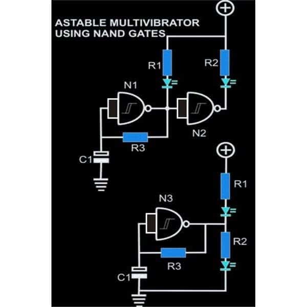 不稳多谐振荡器(lamv)使用与非门的电路或IC 4093