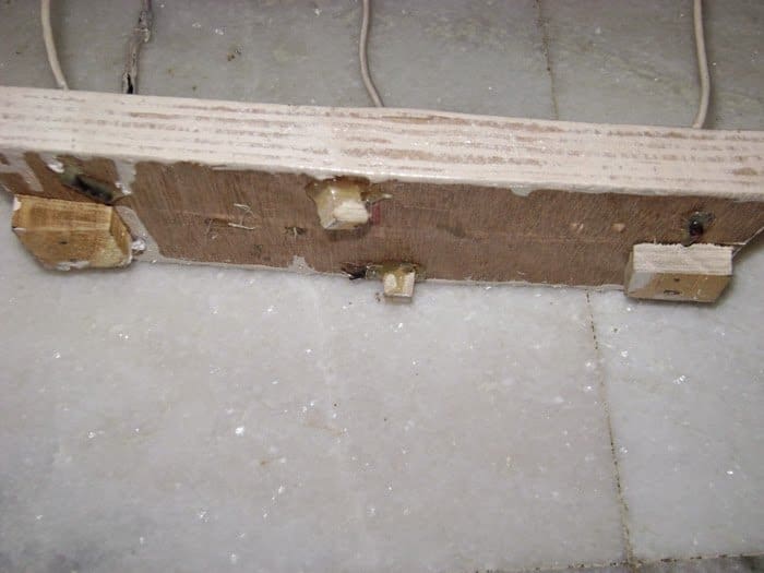 首先,取出木板和钻孔,使得它们在加入时形成三角形。下一步钻孔木板左上角的孔,用于固定排气扇的钢管,其顶部风扇将固定和LED。