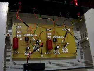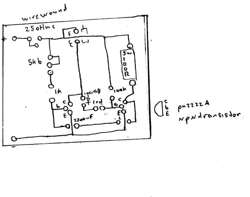 上面是一个脉冲频率驱动器电路,我由YouTube视频构建,我已经对它进行了一些改变,我没有更大的220uf电极才能放入其中的小尺寸,所以我用错误的值并放入2200uf /35伏电器和1N4148二极管。