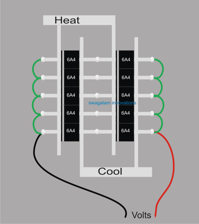 您好Charan,您可以用单个二极管尝试。在二极管上连接一个毫伏,然后用烙铁加热阴极侧引线并检查仪表上的响应。如果它显示了一些读,那么您可以添加更多二极管的组合,如图所示,用于从设置中获取更多输出