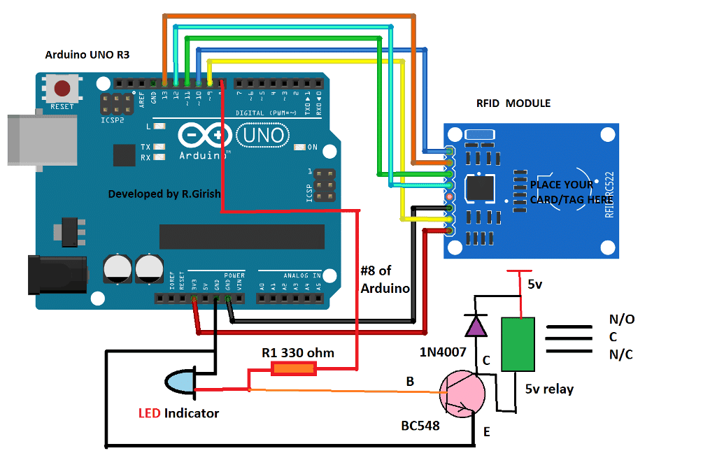 我们不会讨论如何在标记上存储信息,但是将在以后的文章中讨论。在这篇文章中,我们将利用UID号来控制继电器开/关.
