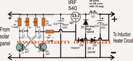 In this post we discuss an induction cooker/heater design which may be powered from a solar panel voltage. The idea was requested by Mr. Vamshee