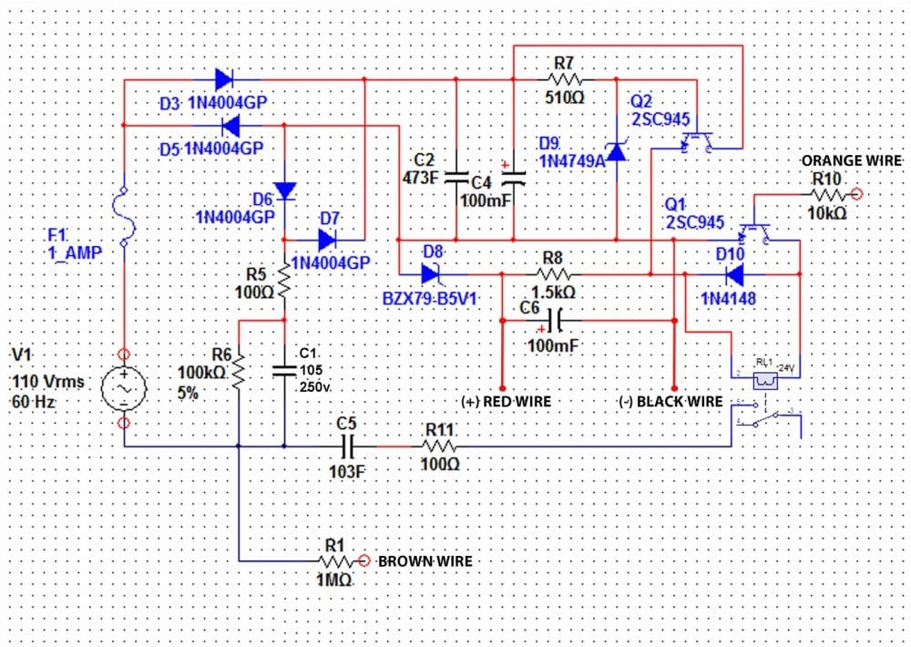C1 =将市电电流降至可容忍电路极限的高压电容器。