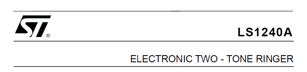 来自SGS Thompson的LS1240A集成电路是专门为产生2音铃声产生电路而设计的。因此,集成电路特别适合于固定电话在接到电话时产生铃声。