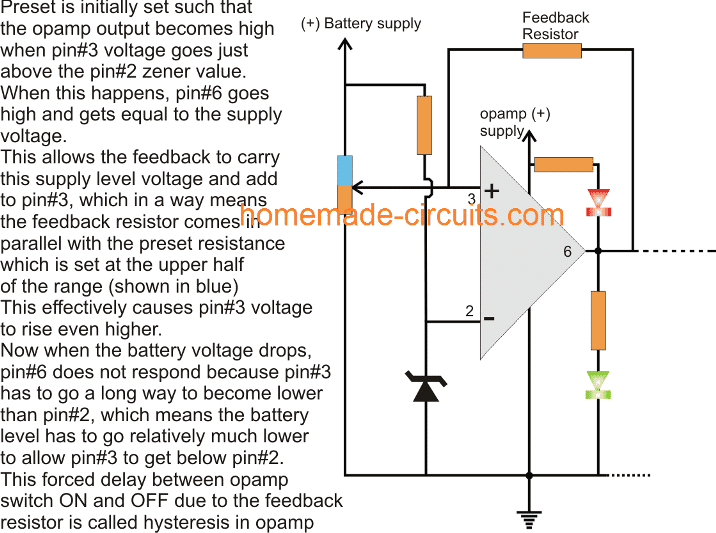 你可能已经遇到过许多基于运放的电池充电器电路,其中没有迟滞实际上成为一个缺点,我们必须通过在输出和运放的一个输入引脚添加一个反馈电阻来强制迟滞,以实现迟滞效应。